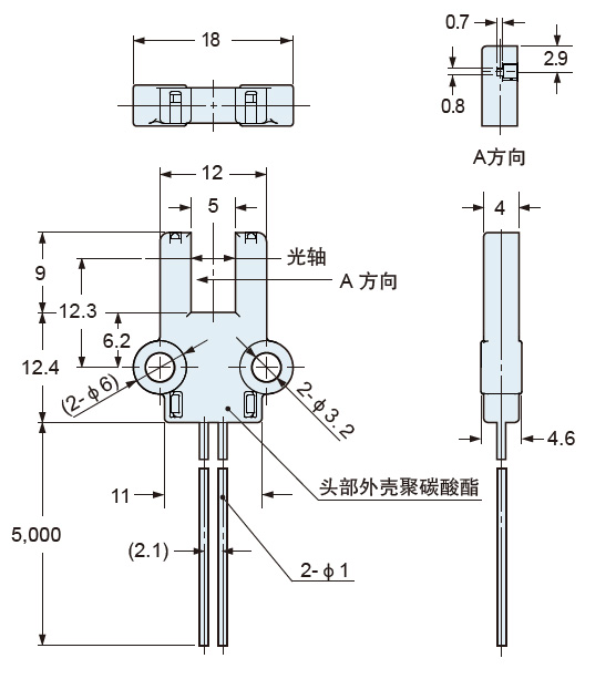 元器件产品及解决方案 > 产品中心 > 控制机器首页 > 工业控制 > 传感器 > 光纤传感器 > 特殊形状光纤 > 尺寸图